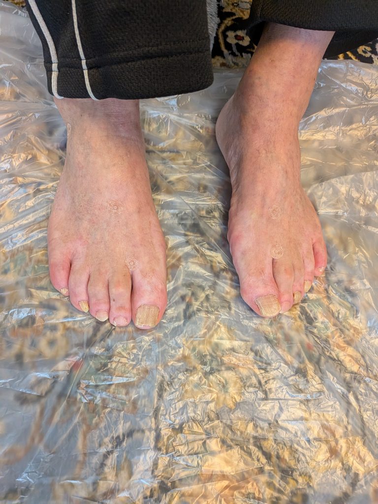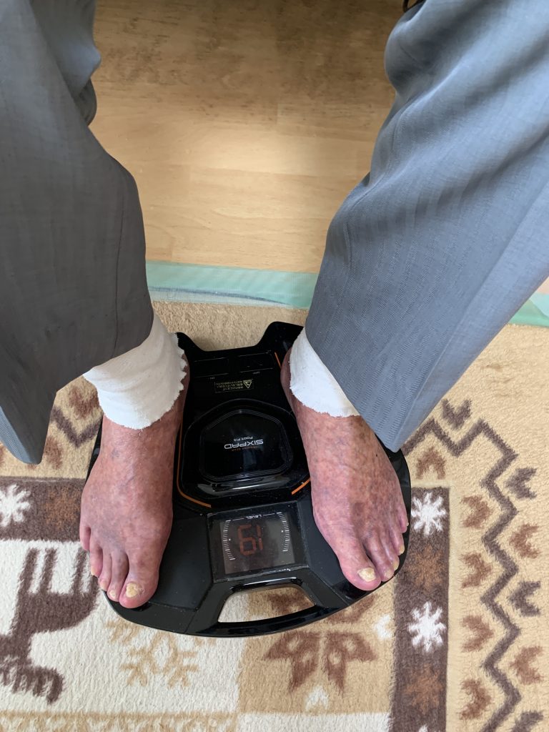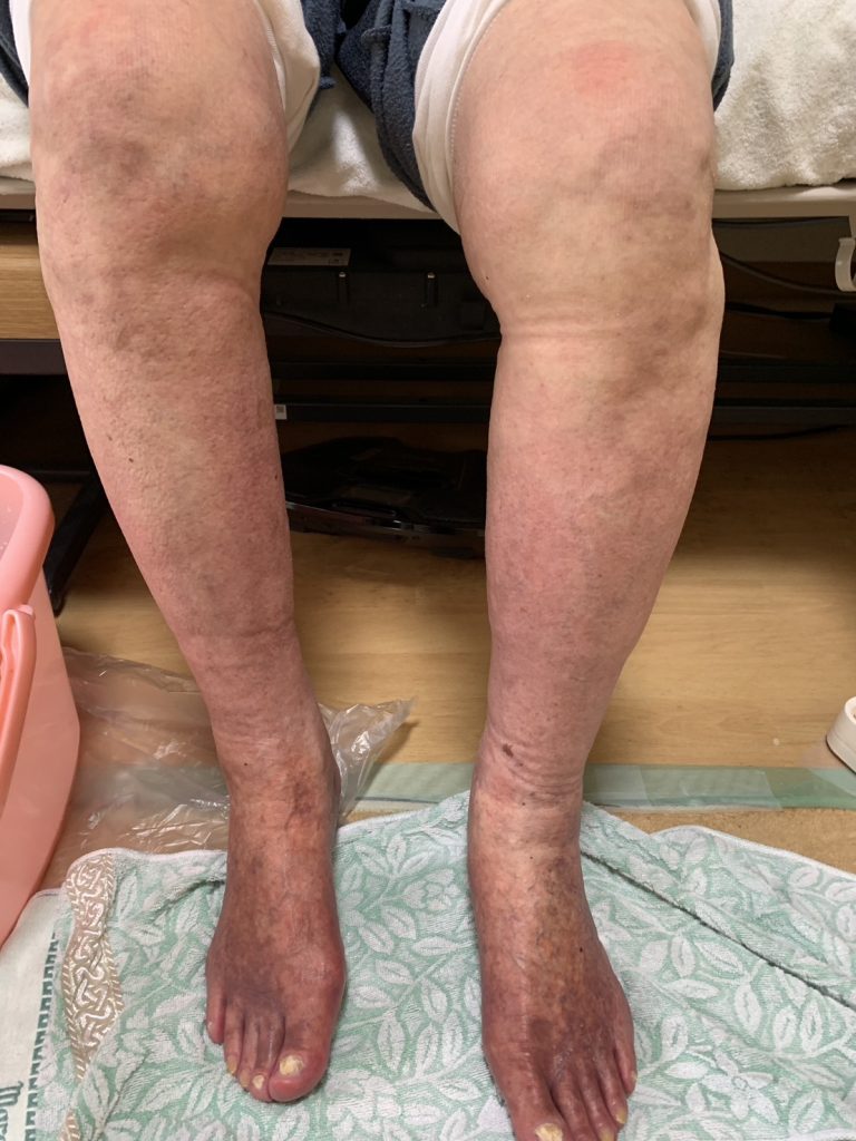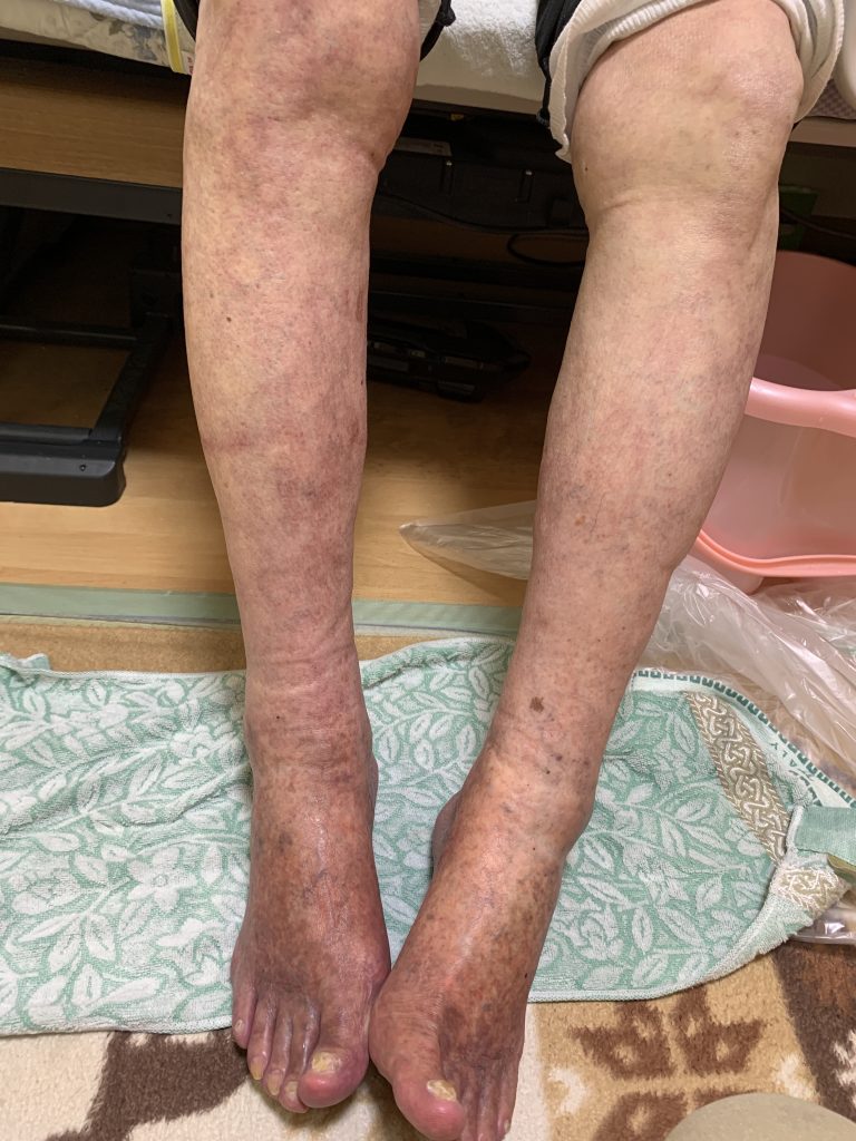 ・要介護1 サービス付き高齢者住宅に入居されているが息子様から足の爪、白癬巻き爪の処置や定期の足浴をお願いしたいと言うご依頼。機能訓練やフットケア定期的に行っている。(定期利用)